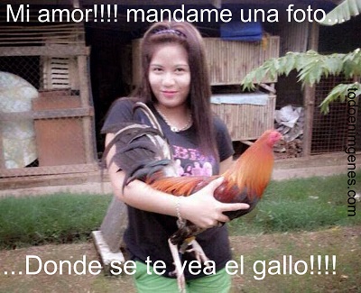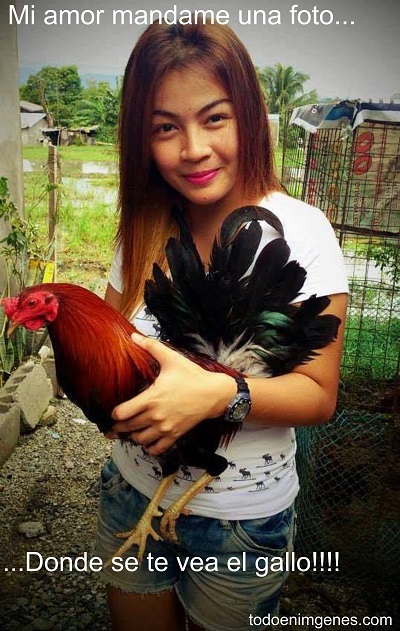 Imágenes mi amor mandame una foto donde se te vea el gallo para descargar Si te gusta las imágenes chistosas estas en el mejor lugar porque nosotros somo expertos en publicar de esta clase de imágenes porque no hay nada mejor que hacer reír un poco a nuestros amigos, como sabes que en todo el mundo existen muchas variedades de gallos y en esta imagen la mujer tiene un gallo de pelea en sus manos.